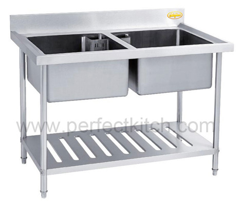 Stainless Steel Table with Double Sink& under Shelf